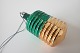 Øverst i midten: Klokke med håndmalet grøn og hvid dekoration . Højde: 5,9 cm. Tyske 1940-erne. I fin stand. Pris: 100 kr.