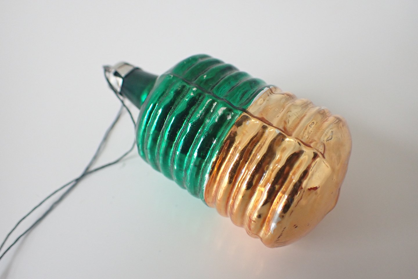 Nederst: lygter med blåmalet og grøn fatning. Tysk c. 1940. Højde: 6,3 cm. I fin stand. Pris: 85 kr. pr. stk.