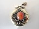 Til højre: Orientalsk parfumeflaske i messing med carbochonsleben agat indfattet i i sølv. Ca. 1900. Pris: 200 kr.